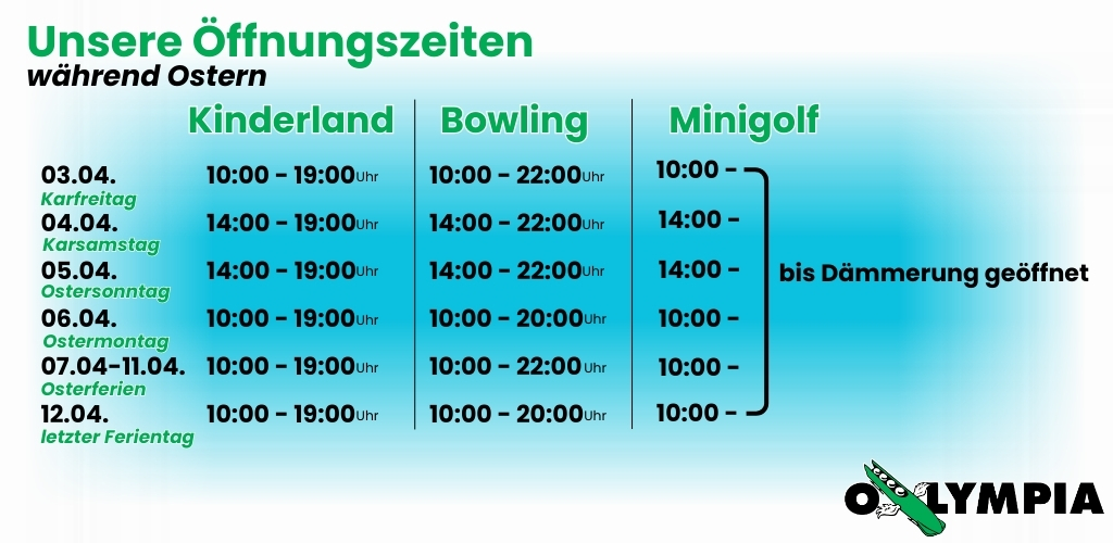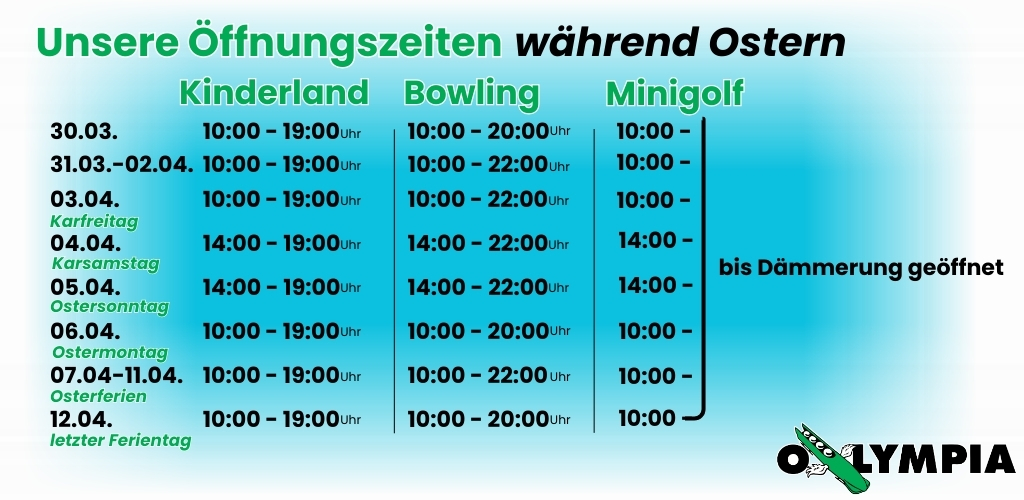 Am 11.03.2026 ist unser Bowlingbereich und unsere Minigolfanlage ab 15:00Uhr aufgrund einer Veranstaltung geschlossen.
